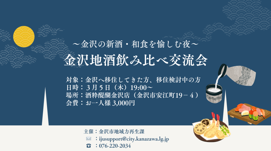 (募集中)【3月5日金沢開催】金沢の新酒・和食を愉しむ交流会を開催!