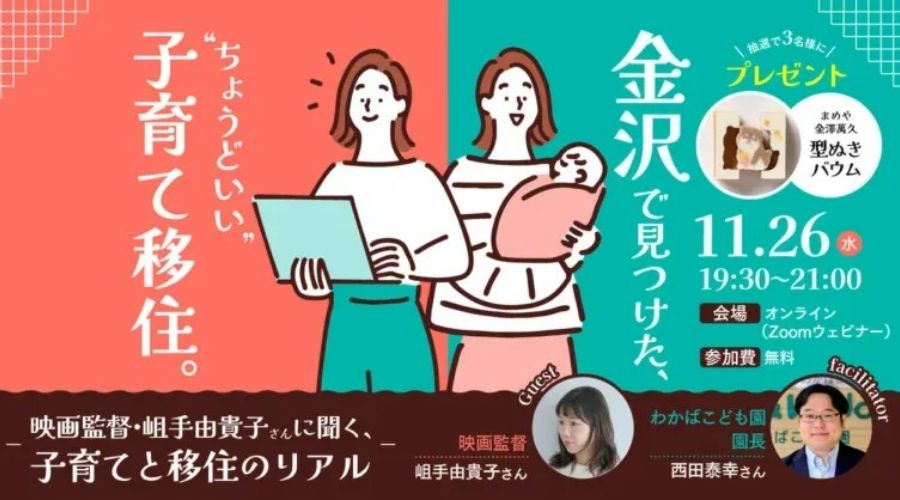 (募集中)【11月26日オンライン開催】金沢で見つけた、“ちょうどいい”子育て移住。 ― 映画監督・岨手由貴子さんに聞く、子育てと移住のリアル―
